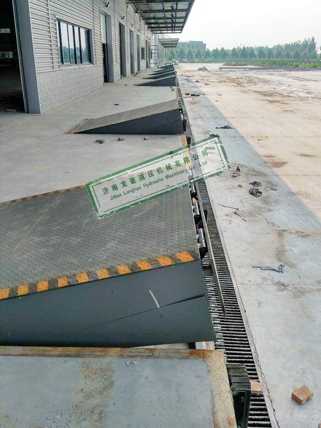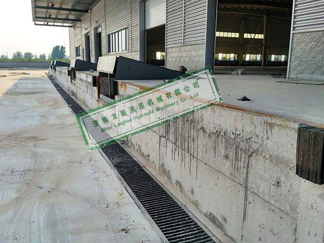 淄博某食品加工企業(yè)倉庫多臺(tái)固定登車橋安裝完畢現(xiàn)場(chǎng)照片