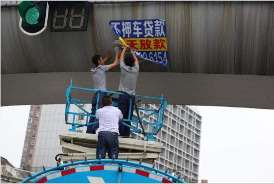 目測人行道過街天橋橋身垂直距離地面8米,100cm*80cm見方的藍(lán)色 “牛皮鮮”上印著車貸廣告。關(guān)注到這些廣告的市民都在猜:“這么高的天橋,牛皮蘚是么樣貼上去的?”據(jù)青山城管“三亂”整治專班負(fù)責(zé)人介紹,友誼大道兩座天橋東南西北四個(gè)方向的紅綠燈旁均被貼上了同一內(nèi)容的“牛皮癬”,應(yīng)該是前天晚上(11日)干的,估計(jì)有兩種方式張貼:一是借助比較高的車身站立進(jìn)行,這需要大型車輛配合;二是腰系安全帶從橋面懸垂下去,這很簡單,但是很危險(xiǎn)。不管是怎么貼上去的,只要發(fā)現(xiàn)一處,就清理一處,這點(diǎn)事難不倒我們。有困難找龍豪升降機(jī),除了及時(shí)清理外,還將對(duì)當(dāng)事人展開調(diào)查,依法進(jìn)行處置。