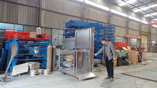 濟南龍豪液壓生產(chǎn)的無障礙(殘疾人)升降機,主要是由方管做的兩組導軌和升降平臺板組成的然后全部外封不銹鋼板,類似一個簡易的小電梯。整體導軌是鑲嵌在通道出入口的墻壁上,或者什么都不依靠固定在地面上,然后向周圍做固定點。而無障礙(殘疾人)升降機在不使用時可以放置于地面持平,這樣不會占用通道出入口處的空間。乘坐輪椅的殘疾人在使用時,輪椅四個輪子可以被固定在臺板上,按動開關(guān)后就可以控制升降機上升下降,安全方便。