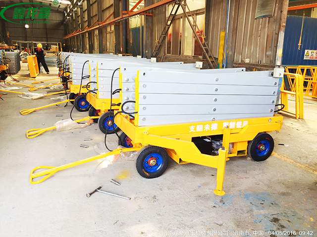 移動(dòng)剪叉式升降平臺(tái)主要技術(shù)特點(diǎn):臺(tái)面鋼板折彎、底架及剪叉結(jié)構(gòu)山鋼定做高強(qiáng)度矩形管材; 標(biāo)準(zhǔn)冷彎槽做道軌,使用尼龍滑塊做導(dǎo)軌輪,接觸面大,升降平穩(wěn),晃動(dòng)??;液壓油缸 內(nèi)置防爆閥(防止油管斷裂,平臺(tái)失速下降),采用進(jìn)口密封圈,經(jīng)久耐用,不泄露;雙層鋼網(wǎng)高壓油管;升降機(jī)專用液壓泵站,加裝應(yīng)急下降閥,平臺(tái)斷電可手動(dòng)控制 下降,內(nèi)置溢流閥,可防止上行運(yùn)動(dòng)時(shí)系統(tǒng)壓力過高,起到超載保護(hù)功能;充氣橡膠輪胎; 電路電器、接觸器羅列連接,加裝熱過載保護(hù),缺相保護(hù)等安全保護(hù)功能;電動(dòng)上、下電動(dòng)控制,控制按鈕盒加裝急停按鈕,以保障財(cái)產(chǎn)及人身安全,各操作部分使用24V安全控制電壓;軸銷圓鋼配做,調(diào)質(zhì)處理;拋丸、噴砂 除銹處理,除去鋼結(jié)構(gòu)構(gòu)件表面的銹蝕及焊接飛濺,能使鋼構(gòu)件表面產(chǎn)生一定程度的凹凸不平的效果,增大粉末的附著力;使用靜電粉末噴涂;涂層外觀質(zhì)量?jī)?yōu)異,附著力及機(jī)械強(qiáng)度強(qiáng),色澤亮度高,經(jīng)久不褪色。